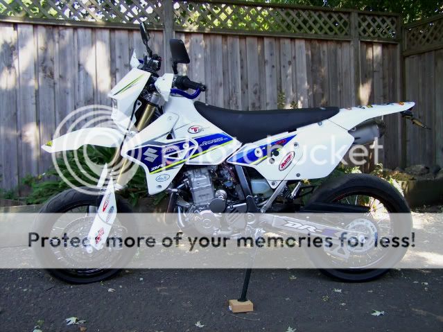 #3• pues a mi me pasa lo mismo y despues de la amarilla/azul tambien creo que la blanca esta preciosa de echo e llegado a pensar en convertirla en blanca mucho antes de comparme la drzsm,de echo solo pensaba que cuando me la comprase la trasformaria en blanca jajajaj lo unico que cambiaria seria el guardabaros de serie por el de supermotad mas corto en blanco claro,que queda brutal jejeje.yo desde luego te animo porque creo que sere el proximo en hacerlo si puedo y y ya para rematar le pones el yoshimura rs4 que es al que le queda mejor el doble escape,es curioso pero no queda igual de bieen el yhosimura rs4 en la amarilla y la negra que como queda en la blanca que queda sencillamente increible,el unico tema de hacerla en blanca que no llege a pensar es el de los vinilos supongo que en una imprenta te los podran hacer siempre y cuando quieras los mismos de serie que a mi parecer es lo suyo porque quedan muy bien como las del modelo de serie. el deposito de gasofa si lo pintarias verdad en blamco?y los plasticos cres que un profesional del vinilo podria vinilarlos en blanco? respedto al sillon mejor el original de suzuki con el logo si si si yodrz | |